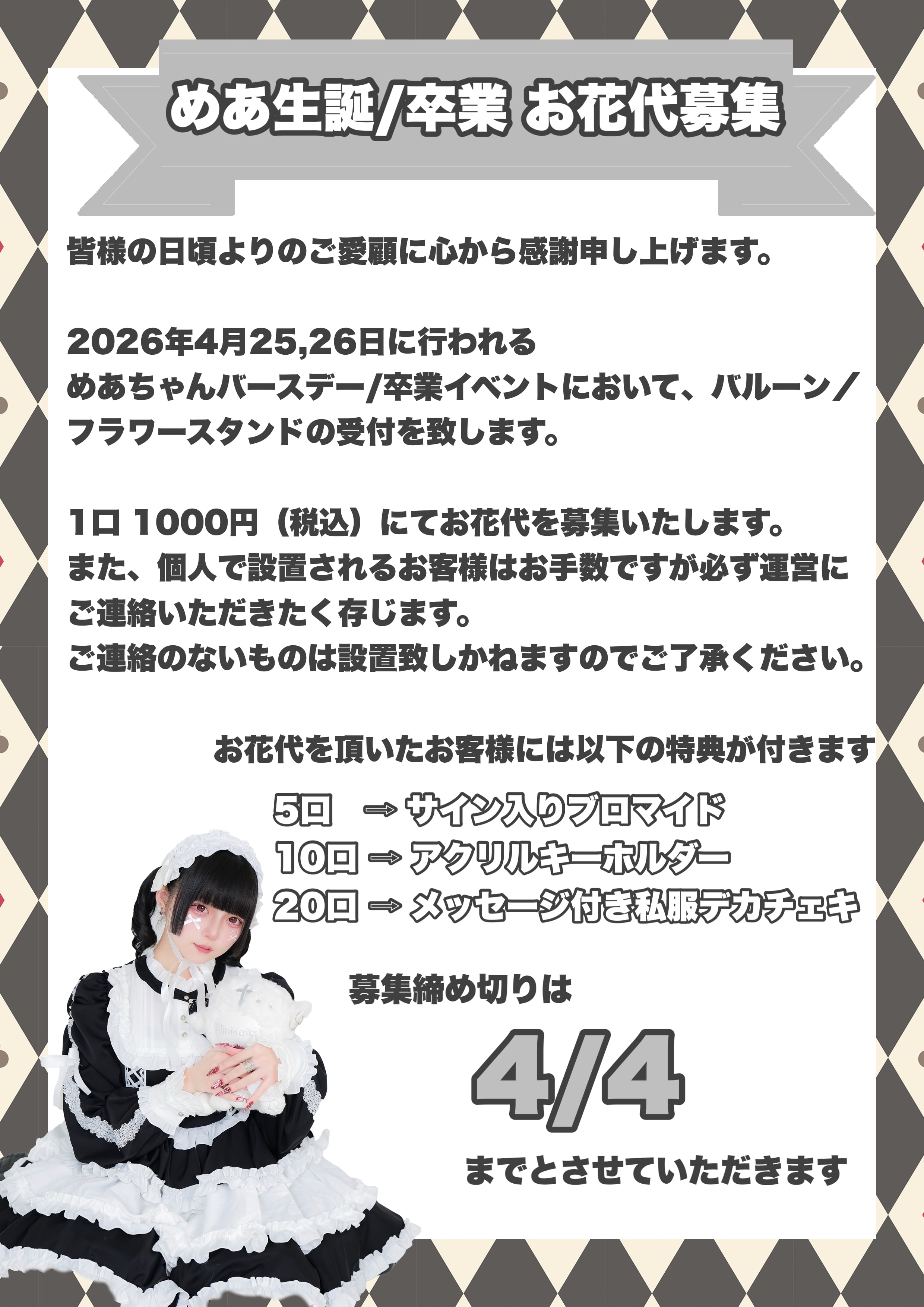 4/25(土)、26(日) めあちゃん生誕・卒業祭